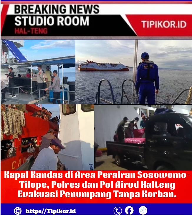 HALTENG, PERS TIPIKOR.ID — Kapal Motor (KM) Cantika 9C dilaporkan kandas di perairan antara Desa Sosowomo dan Tilope, tepatnya di area Rep Payung, Pada 11/12/2025, sekira pukul 06.00 WIT pagi tadi. Insiden tersebut membuat kapal tidak dapat melanjutkan perjalanan, sementara puluhan penumpang menunggu proses evakuasi di atas kapal.